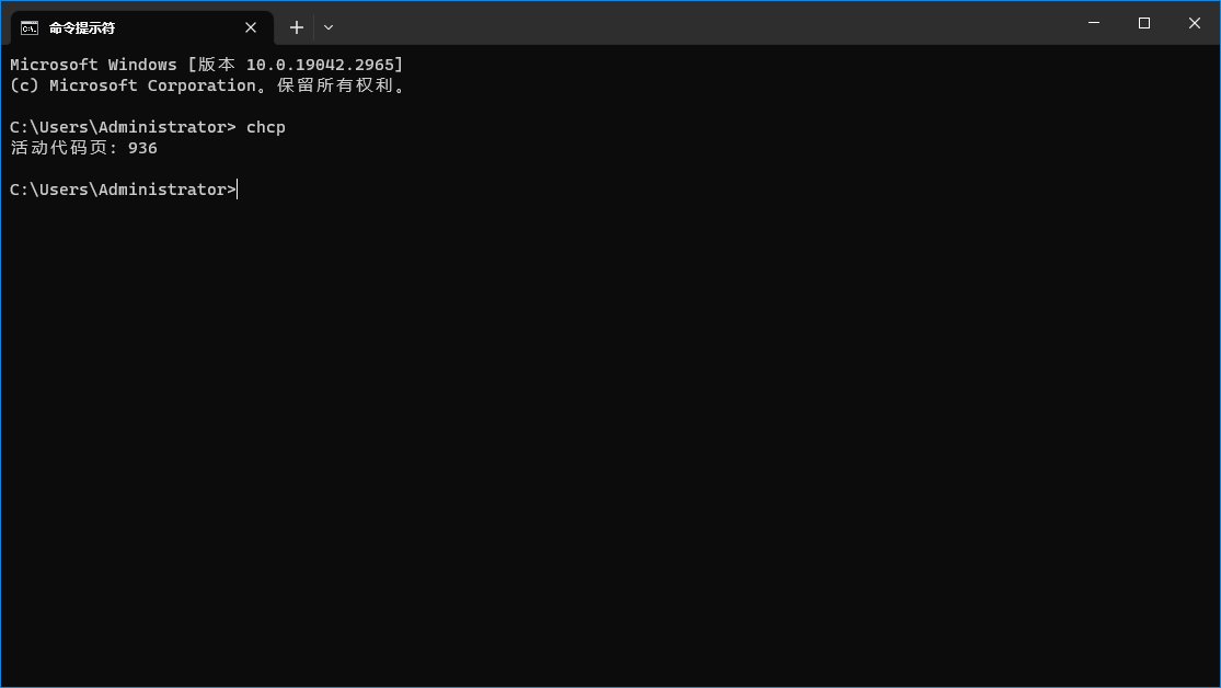 上图显示,当前控制台的编码为 936,表示编码为 GBK。