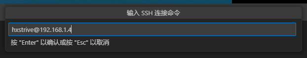 (3)在弹出的“输入SSH连接命令”窗口中输入“用户名@主机地址”格式的连接字符串,回车,如下图: