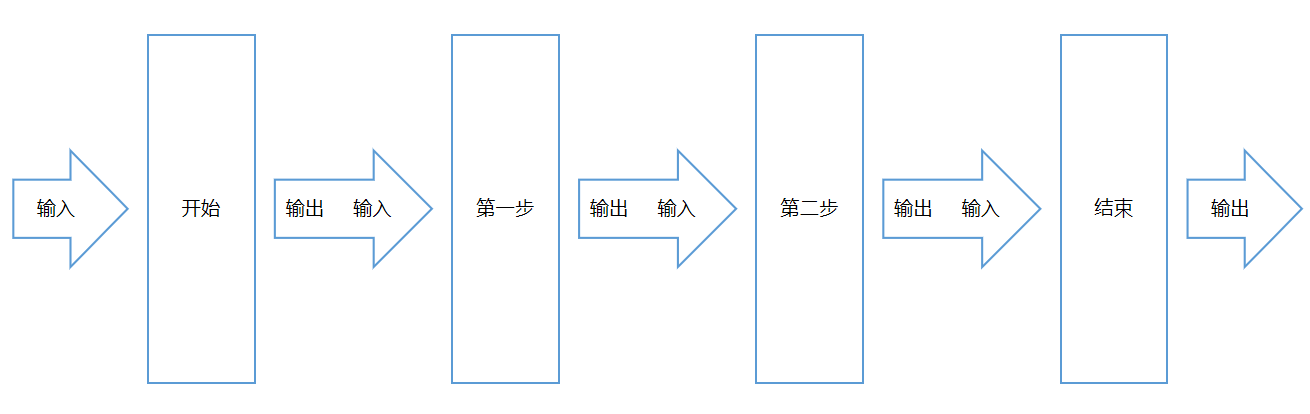 上图中,开始节点接收用户的输入,然后输出作为第一步的输入,依次类推,最终结束节点将处理后的数据输出。