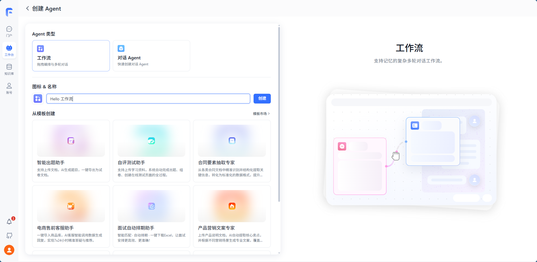 有了前面创建会话 Agent 的基础,那么,创建工作流也就得心应手了。