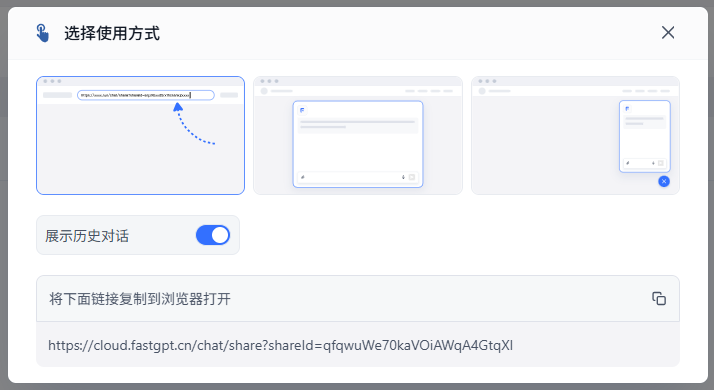 将开始使用窗口底部的 URL 地址拷贝下来,在浏览器地址栏打开,就可以进行对话了,如下图: