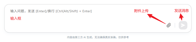 如下图,提供了一个输入框、附件上传和发送按钮。