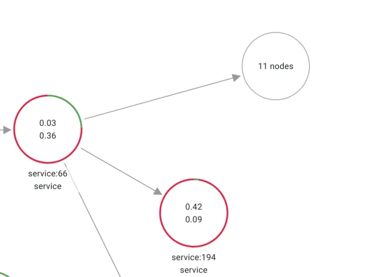 通常,节点内部会显示两个统计值,节点下方会显示两个标识符,通常是名称和类型。节点还可以显示另一组值,如节点周围的彩色圆圈,不同颜色的部分代表不同的值,相加应为 1。