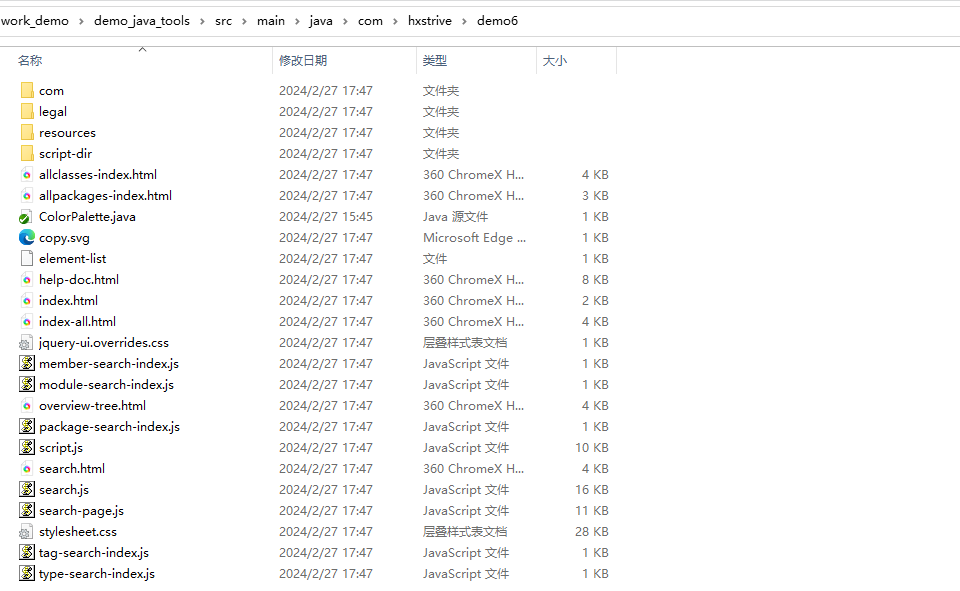 当命令成功执行后,将在当前目录下面生成 JavaDoc 文档,如下图: