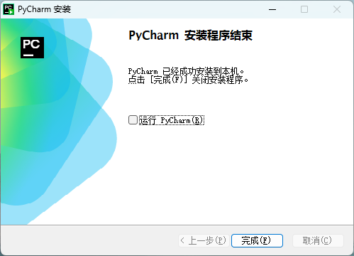 (6)PyCharm 安装完成,勾选“运行 PyCharm”,点击“完成”完成安装,同时启动 PyCharm,如下图: