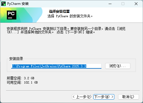 (2)选择 PyCharm 的安装目录,如果不需要修改,直接点击“下一步”,如下图: