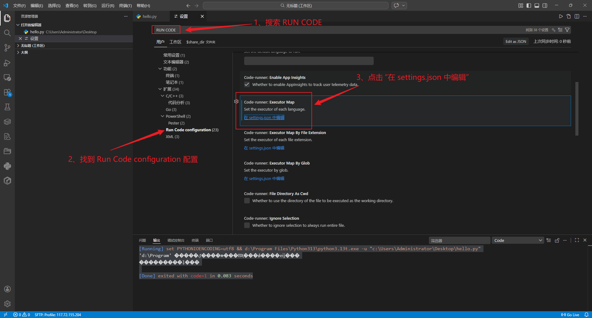 (2)在设置页面搜索 RUN CODE 相关的配置,如下图: