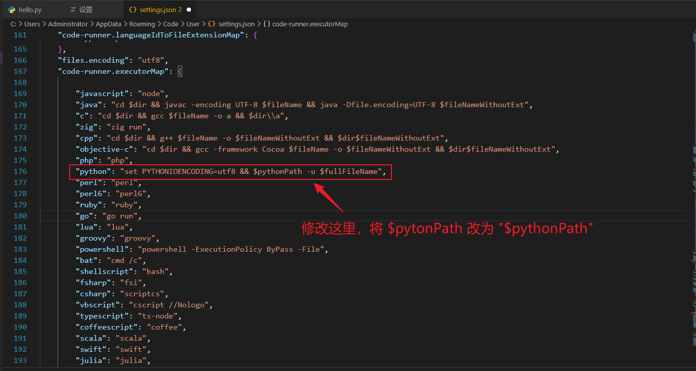 修复方式也很简单,给 Python 路径加引号,修复后的路径为: