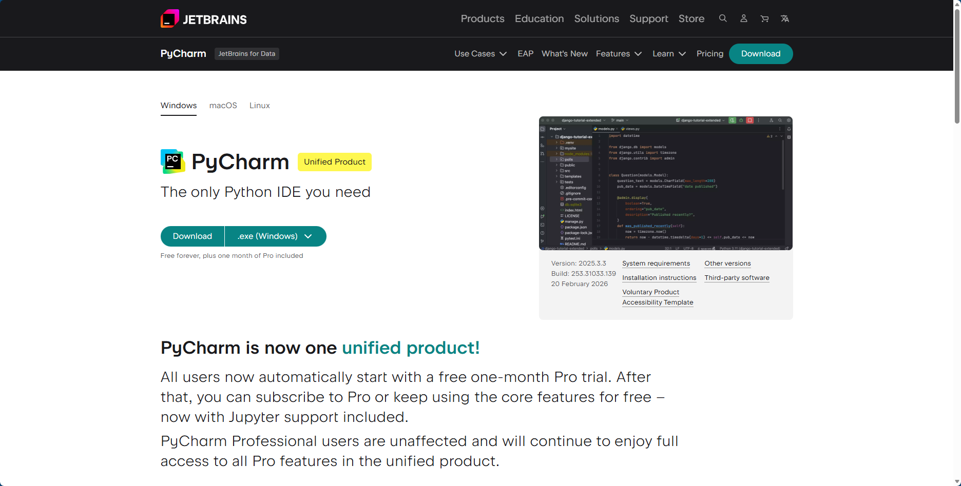 下载地址:https://www.jetbrains.com/pycharm/download/?section=windows