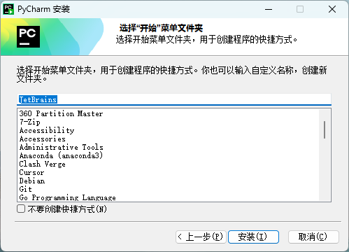 (4)配置在开始菜单中的目录名称,直接点击“安装”,不需要修改,如下图:
