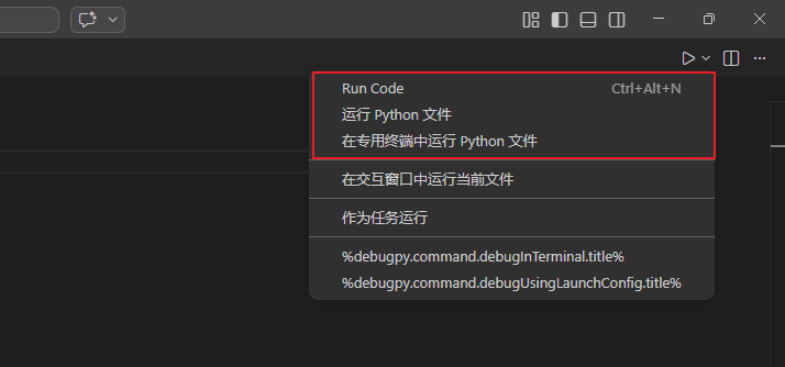 ,将弹出下拉框,总共提供了多种运行 Python 的方式,如下图: