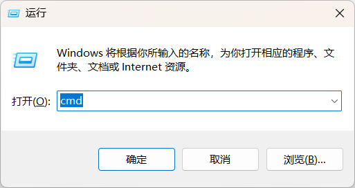 如果在 Windows 平台下,可以按“Win + R”快捷键,打开命令提示符,如下图: