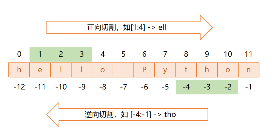 print(s6) # 输出:Hello\nPython除了上述这些,Python 还为字符串提供了切片操作。切片是处理字符串的核心操作,本质是从字符串中截取指定范围的子字符串,支持正向 / 反向索引、灵活的步长控制。